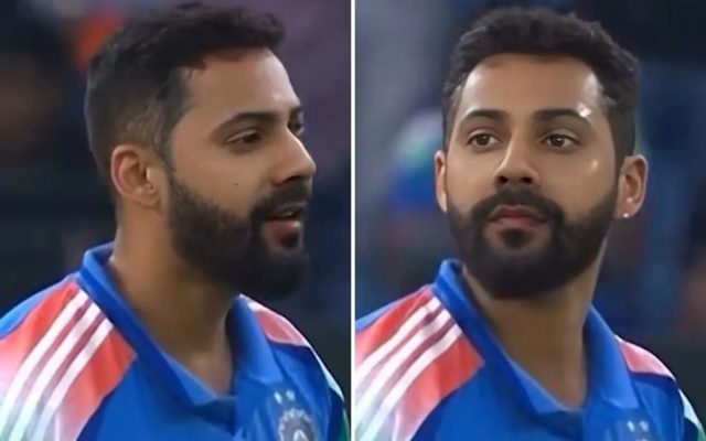 इस वीडियो में देखा जा सकता है कि वरुण चक्रवर्ती न्यूजीलैंड के खिलाफ खेले गए मैच के दौरान गेंदबाजी कर रहे हैं। और वरुण धवन ने अपने चेहरे को वरुण चक्रवर्ती के चेहरे से स्वैप किया है।