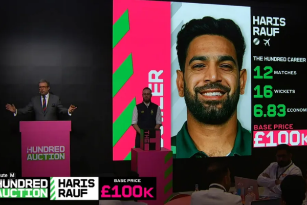दा हंड्रेड के पहले मेन्स ऑक्शन में एक बड़ा चौंकाने वाला नतीजा देखने को मिला। अनुभवी तेज गेंदबाज हारिस रऊफ़ पहले राउंड में बिना किसी बोली के अनसोल्ड रह गए। टी20 क्रिकेट में उनके लंबे अनुभव और दुनिया भर की लीगों में खेलने के बावजूद किसी भी फ्रेंचाइजी ने उन पर बोली नहीं लगाई, जिससे कई क्रिकेट फैंस हैरान रह गए।