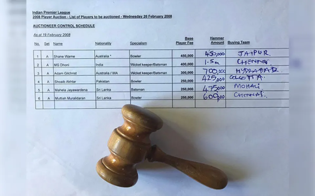 पहला इंडियन प्रीमियर लीग ऑक्शन शीट, जिसमें पूर्व भारतीय और चेन्नई सुपर किंग्स के कप्तान एमएस धोनी शामिल थे, को 2019 में पूर्व आईपीएल ऑक्शनर रिचर्ड मैडली ने शेयर किया था। इसके बाद कैश से भरपूर इस लीग के इतिहास के सबसे यादगार पलों में से एक की पुरानी यादें ताज़ा हो गईं।