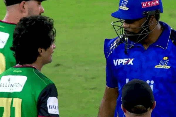 ILT20 द्वारा सोशल मीडिया पर साझा किए गए वीडियो में साफ देखा गया कि पहले पोलार्ड ने कुछ कहा, जिसके जवाब में नसीम शाह भी पीछे नहीं हटे। दोनों खिलाड़ियों के बीच शब्दों की जंग तेज हो गई, जिसके बाद अंपायरों को बीच में आकर मामला शांत कराना पड़ा।