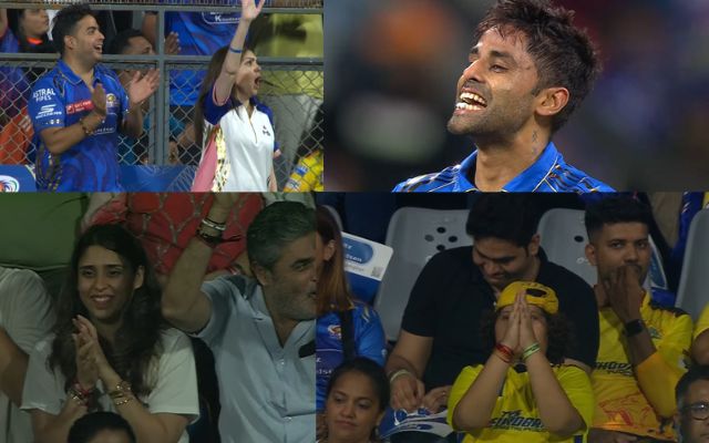 चेन्नई के खिलाफ मुंबई टीम ने गजब की जीत अपने नाम की थी, जिसके बाद स्टेडियम में मौजूद MI के फैन्स खुशी से उछल पड़े थे। वहीं आकाश अंबानी और नीता अंबानी की खुशी भी देखने लायक थी, तो SKY ने भी इस दौरान कमाल का रिएक्शन दिया था और रोहित की वाइफ के चेहरे पर भी बड़ी सी मुस्कान आ गई थी। दूसरी ओर CSK के फैन्स हद से ज्यादा निराश हो गए थे और एक बच्चा का रिएक्शन काफी वायरल हुआ था। आपको बता दें कि मुंबई टीम ने इस मैच को 9 विकेट से जीता था।