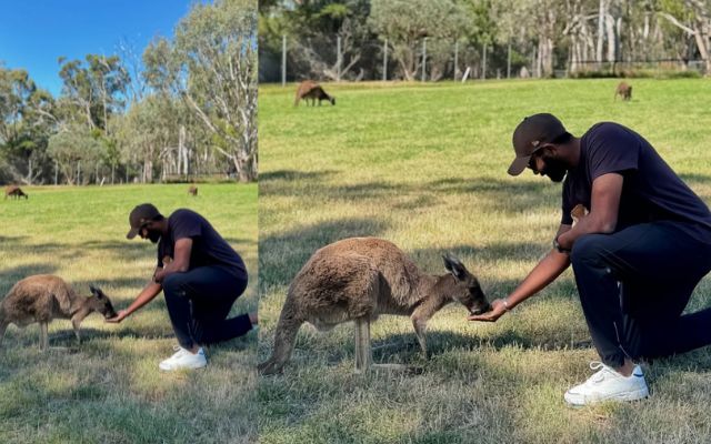 *ऑस्ट्रेलिया की है ये तस्वीर, जिसमें बुमराह कंगारू को कुछ खिलाते दिख रहे हैं।